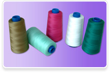 Sewing threads are tightly twisted ply yarns made with strands having equally balanced twist, producing a circular cross section. Thread for use in commercial or home sewing machines and for hand sewing should allow easy movement when tension is applied and ease in needle threading; should be smooth, to resist friction during sewing; should have sufficient elasticity to avoid the breaking of stitches or puckering of seams; and should have sufficient strength to hold seams during laundering or dry cleaning and in use.